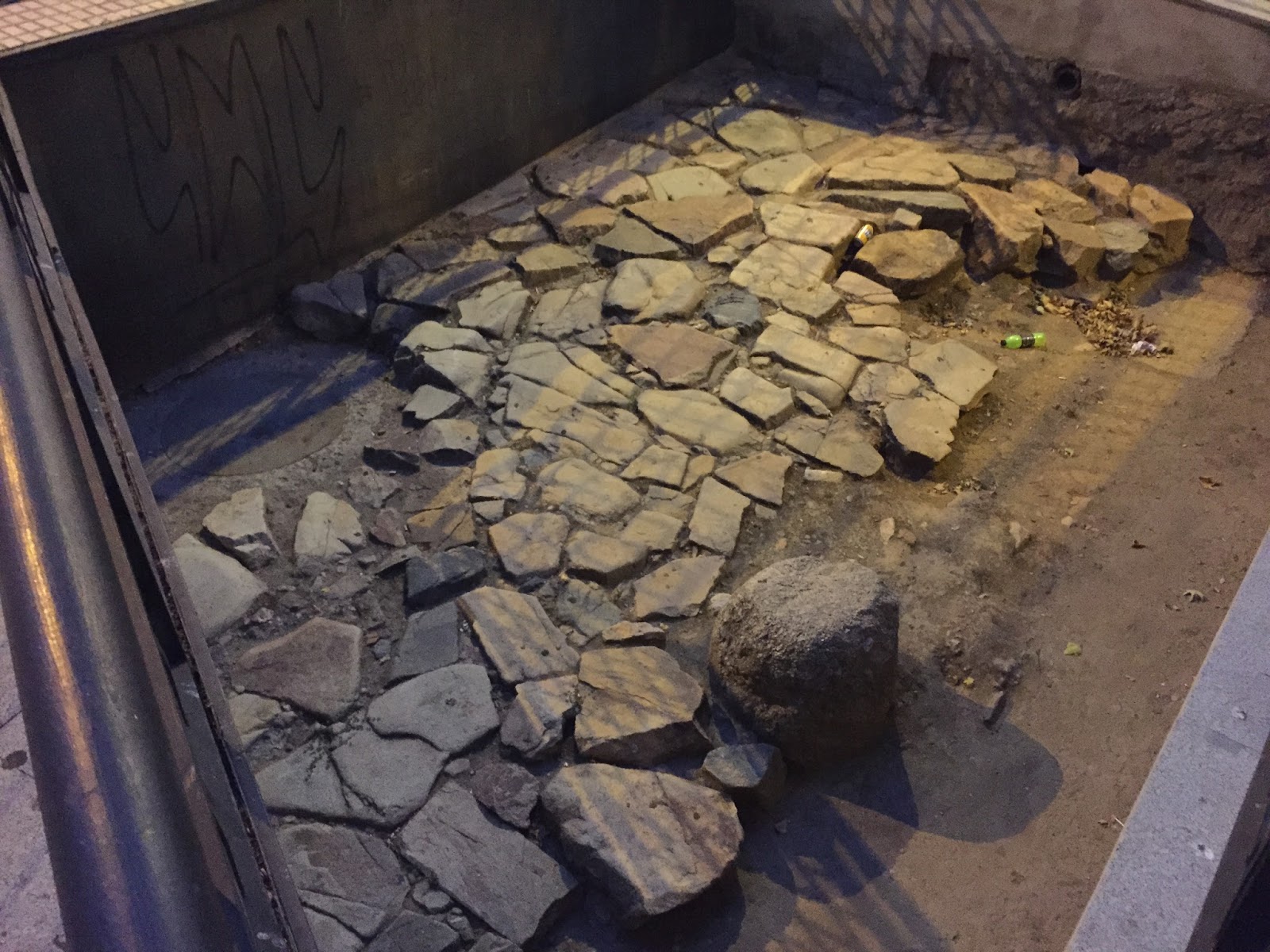 Ruinas musealizadas dunha vella calzada romá preto da entrada ao teatro